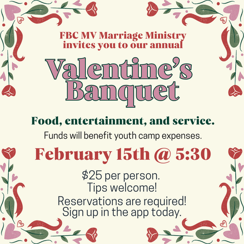 A meal will be provided in the Fellowship Hall promptly at 5:15 pm. The evening continues with preaching and worship after the meal at 6:00 pm. Join Us!